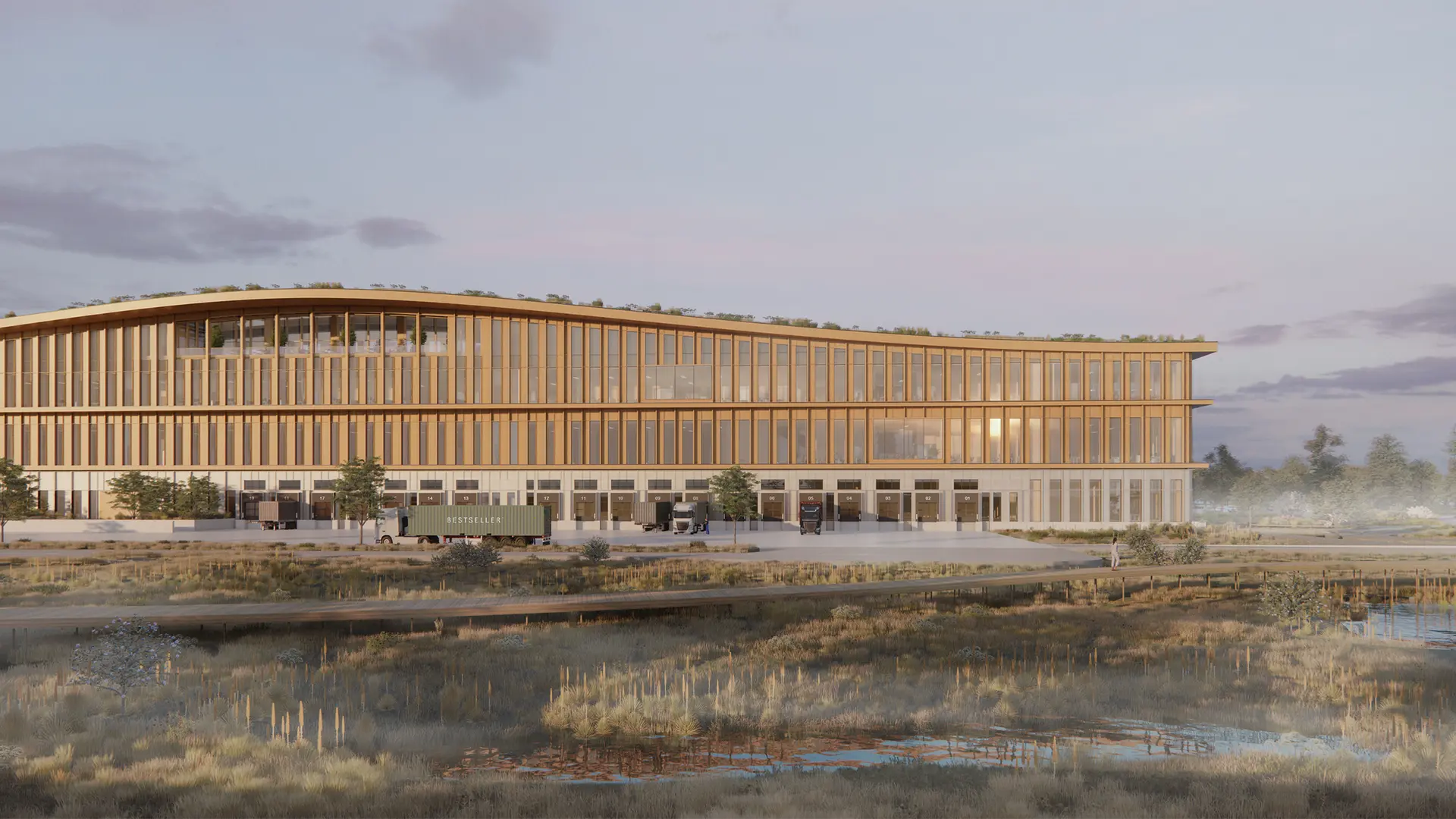 Construction Process: Mass timber LVL post-and-beam structure with floor-to-ceiling glazing; reclaimed timber joinery integrated to reduce material waste