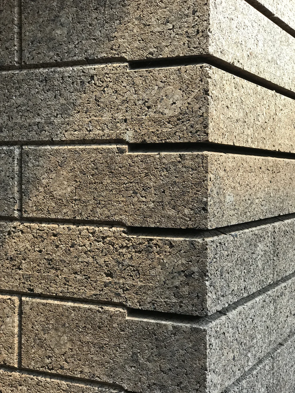 Loadbearing expanded cork blocks used as the primary structural and envelope system within the Cork Construction Kit. Manufactured from heat-expanded cork granules bonded by natural suberin, the blocks require no synthetic adhesives and integrate structure, insulation, and internal finish within a monolithic assembly. Components are CNC-machined and connected using timber dowels in a dry-jointed system, enabling simple on-site assembly, reversible construction, and full disassembly without mortar or cementitious binders.